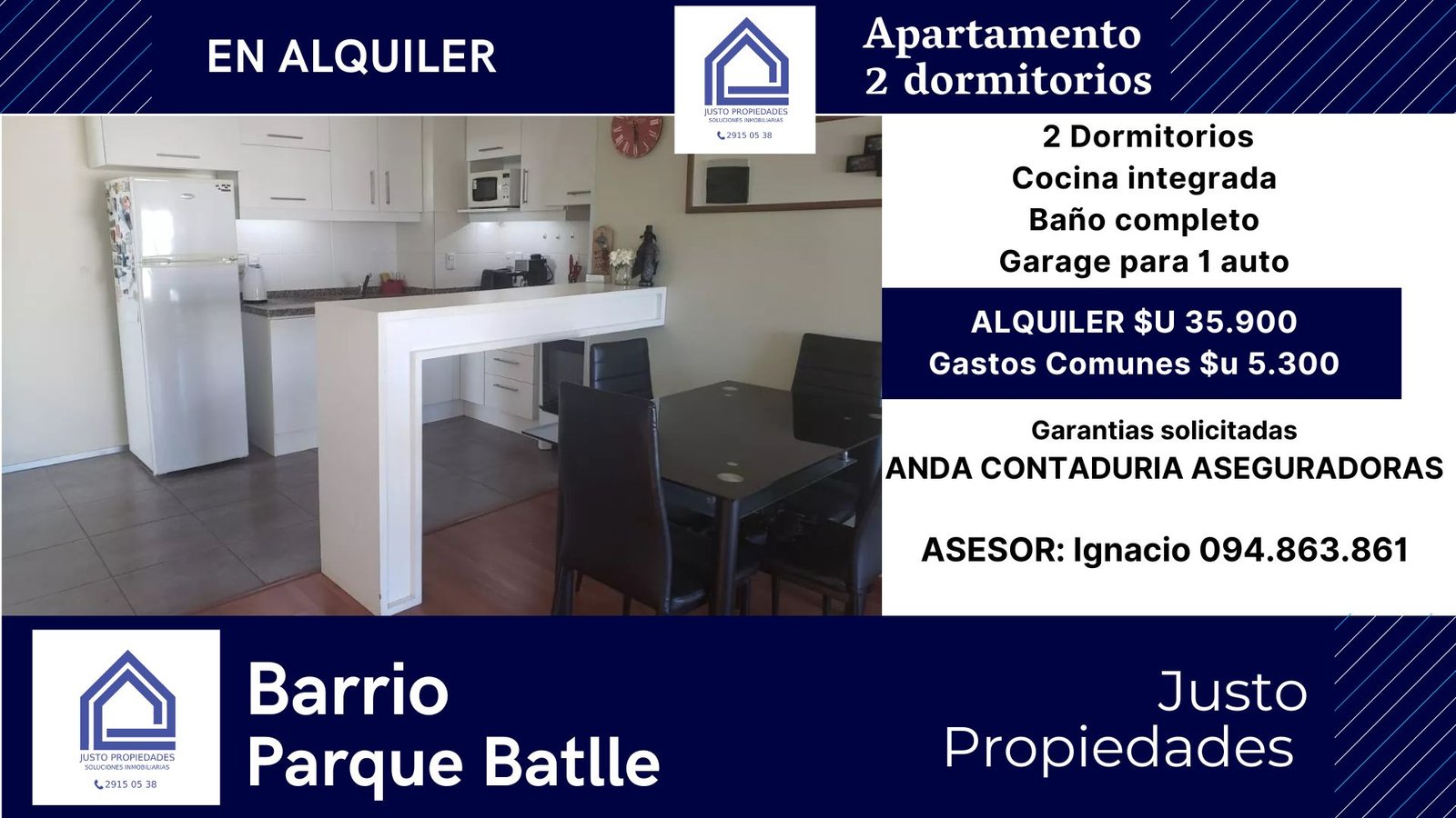 En Alquiler Luminoso apto 2 dormitorios garage en Parque Batlle
